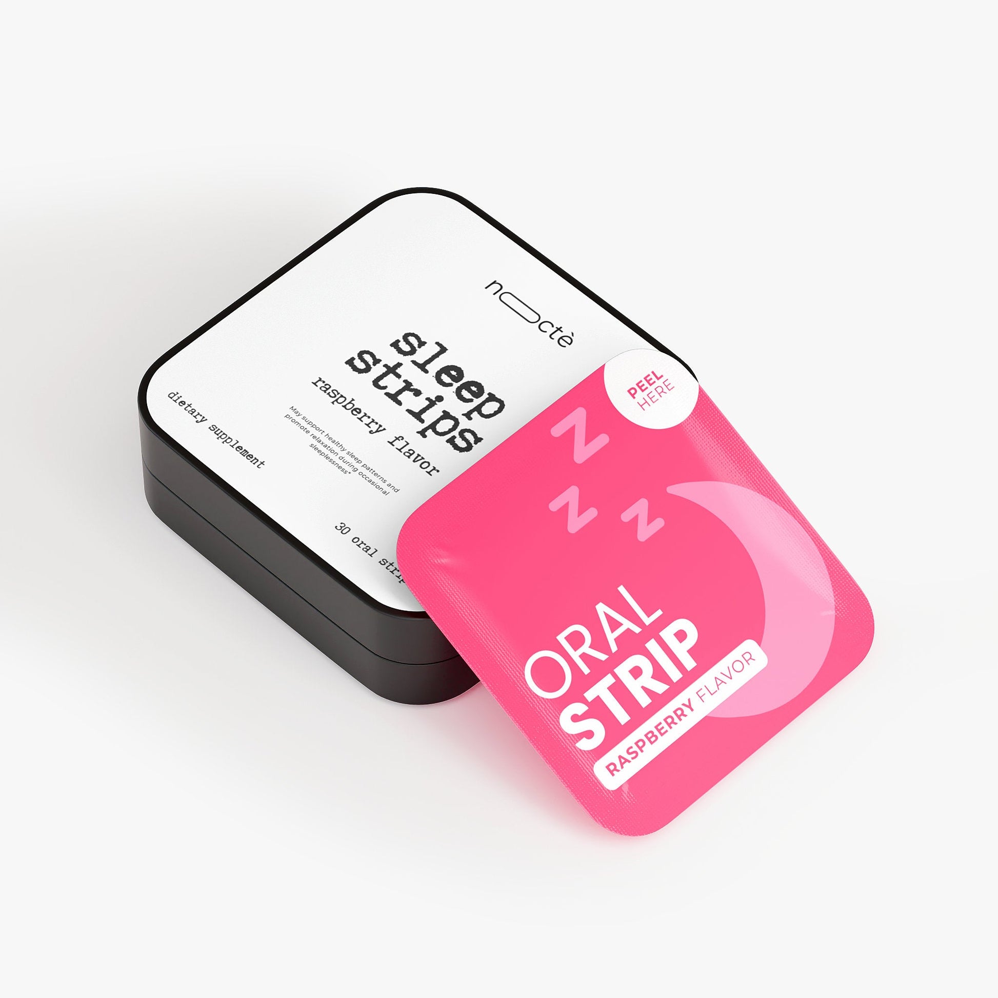 Sleep Strips – Raspberry Flavor Fast-absorbing oral strips infused with Valerian, Chamomile, Hibiscus, Lavender, and Melatonin. Perfect for quick, effortless relaxation before bed — dissolving on your tongue and helping you drift into restful slumber without morning grogginess.