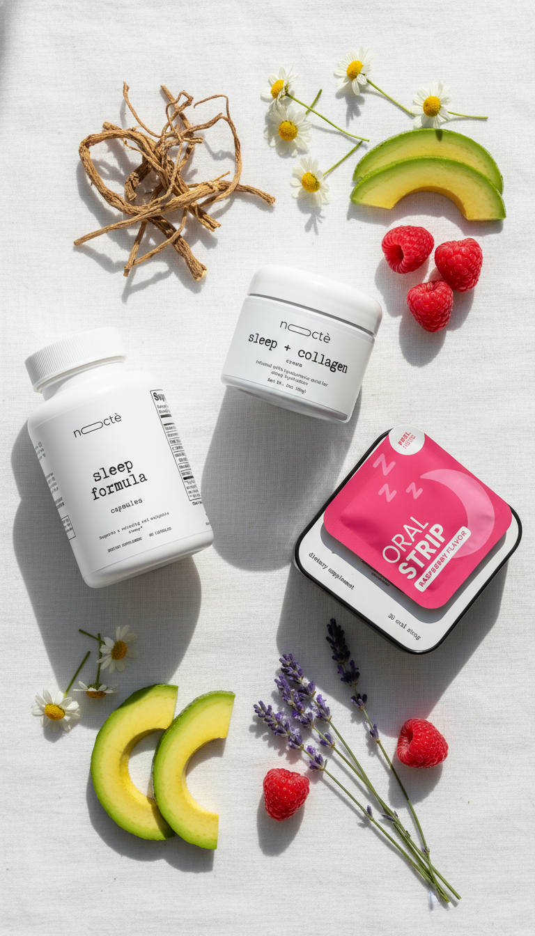 Sleep + Collagen Cream A luxurious night cream enriched with Hyaluronic Acid, Collagen, and natural oils of Avocado and Lavender. Deeply hydrates and nourishes your skin while Melatonin gently supports your sleep cycle, leaving your complexion soft, smooth, and refreshed by morning.